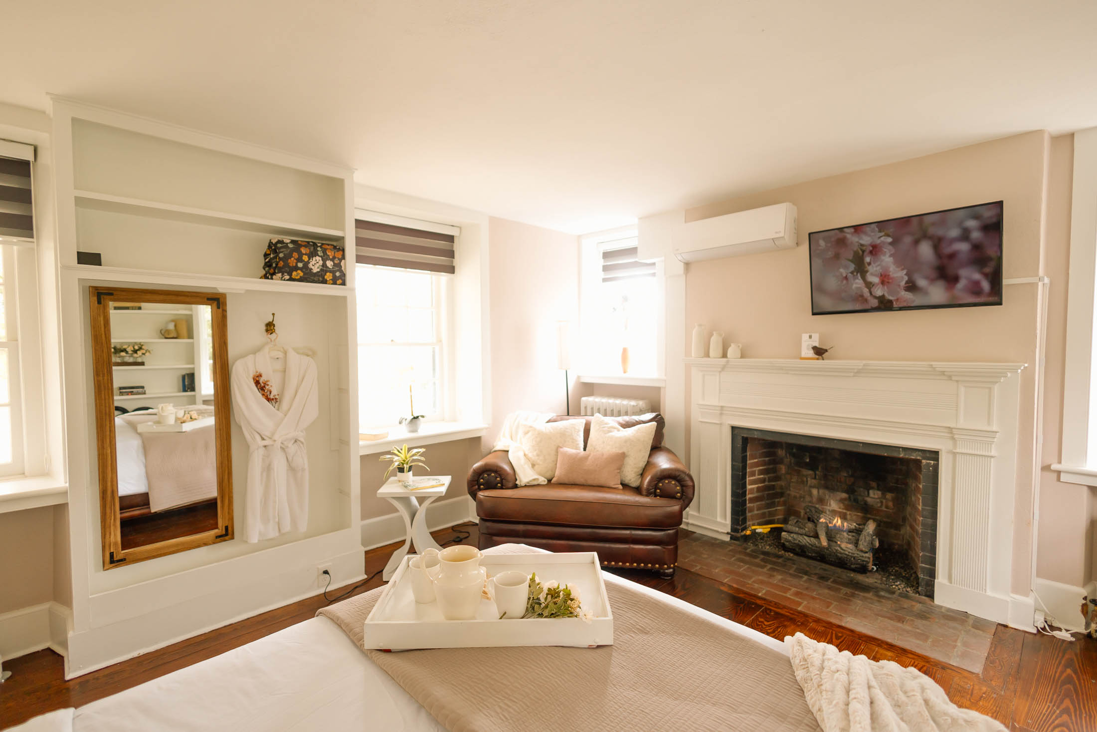 Welcome to the Chimney Hill Estate Inn—Room 5. This beautiful room is in a 5,500-square-foot Colonial house that is completely private. All common areas are available for our guests to hang out or work. Book your stay today!